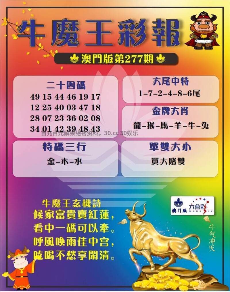 278期:【绝杀三肖】〖虎牛鸡〗开:虎28错