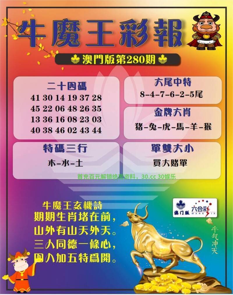280期:【绝杀三肖】〖虎鸡蛇〗开:鼠42中